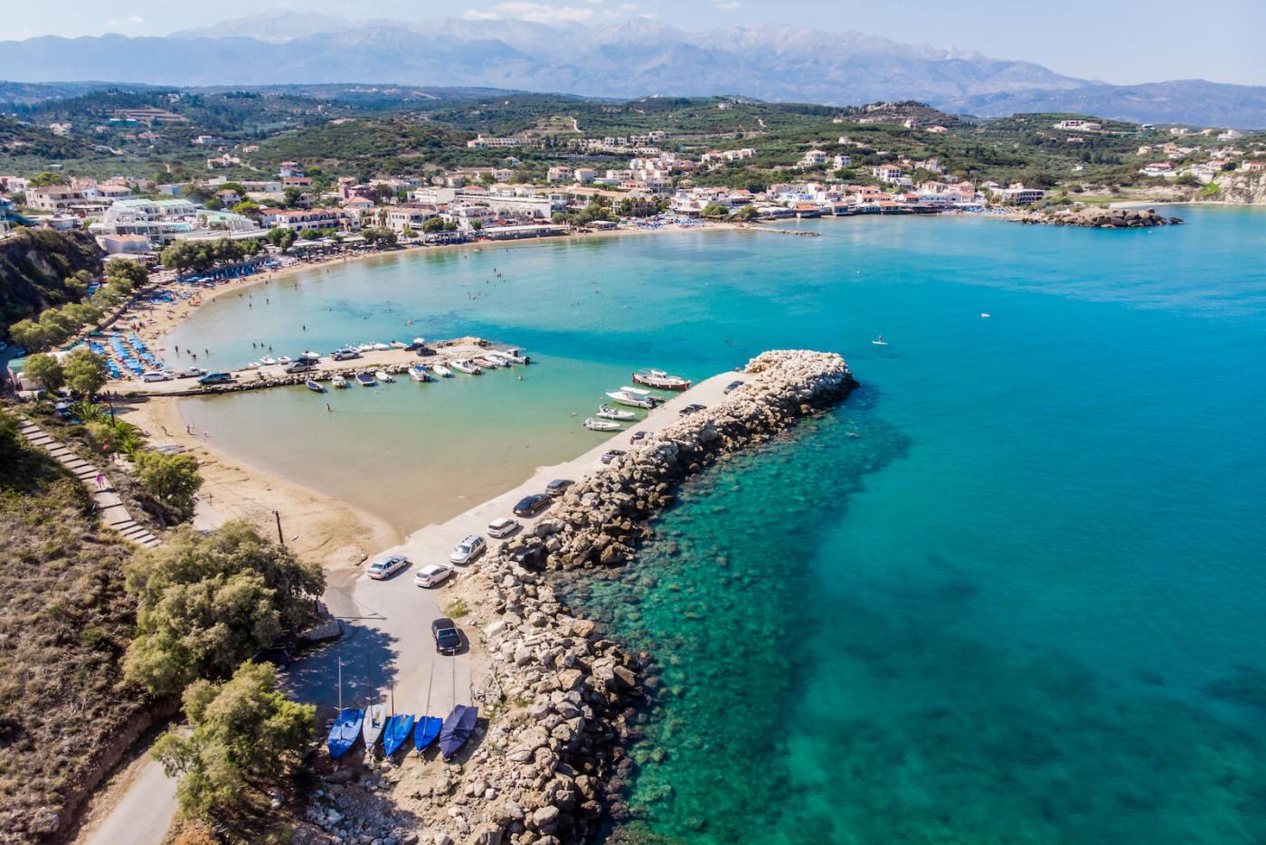 Escape to a cool villa with sublime views over the blue seas of Crete.