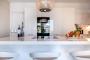 The main living area is on the swimming pool level and has a leather corner sofa and a dining table seating up to 8 people It has a 49-inch flat screen TV with satellite channels and a Sonos Bluetooth music system.