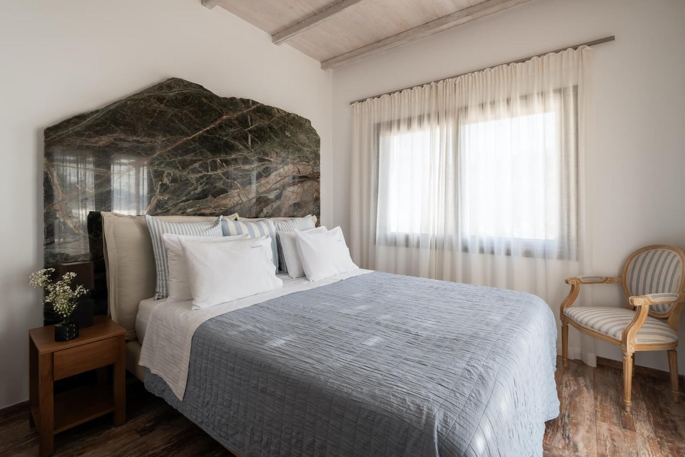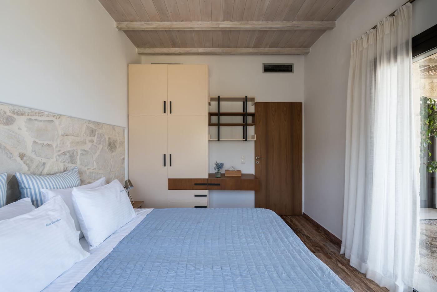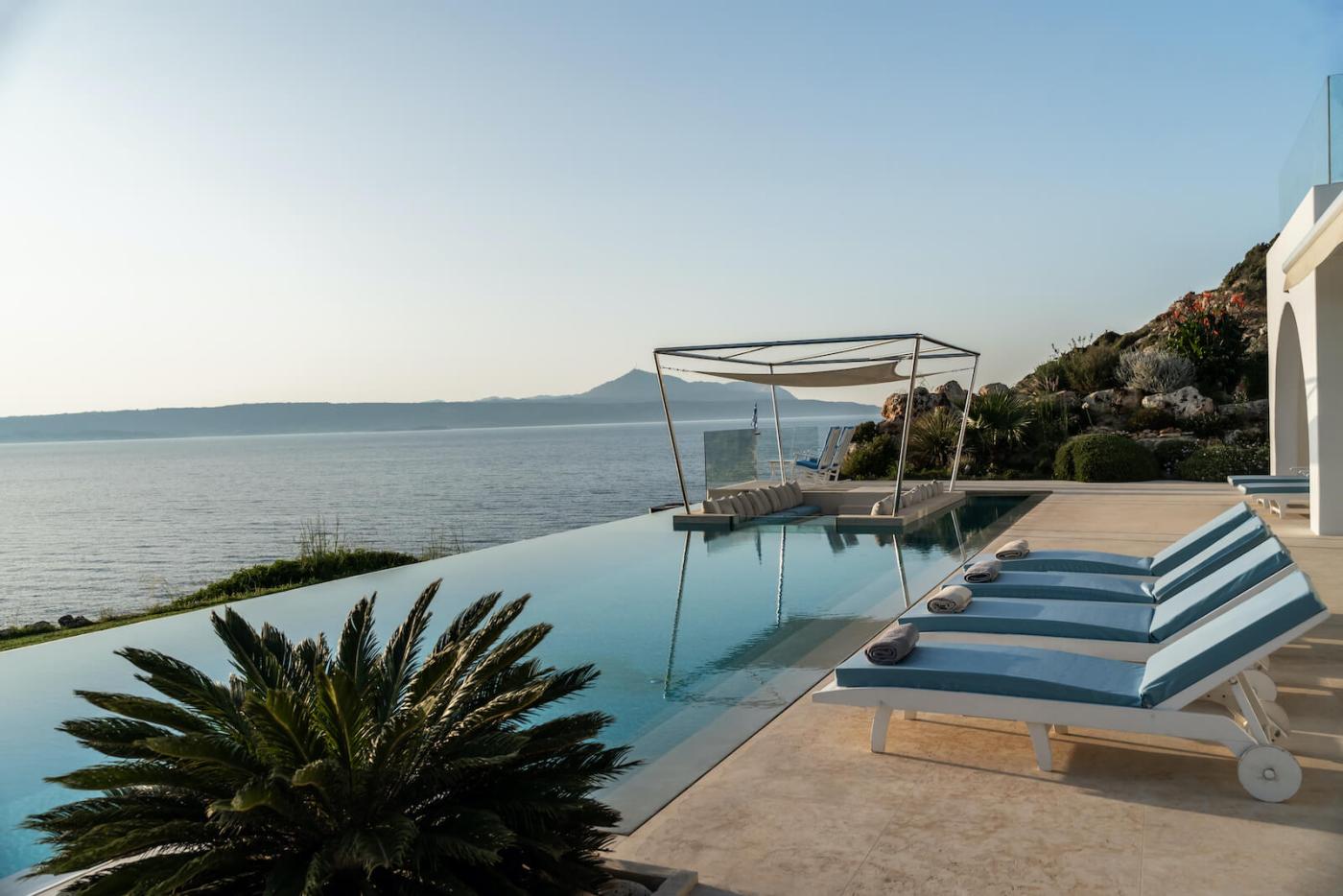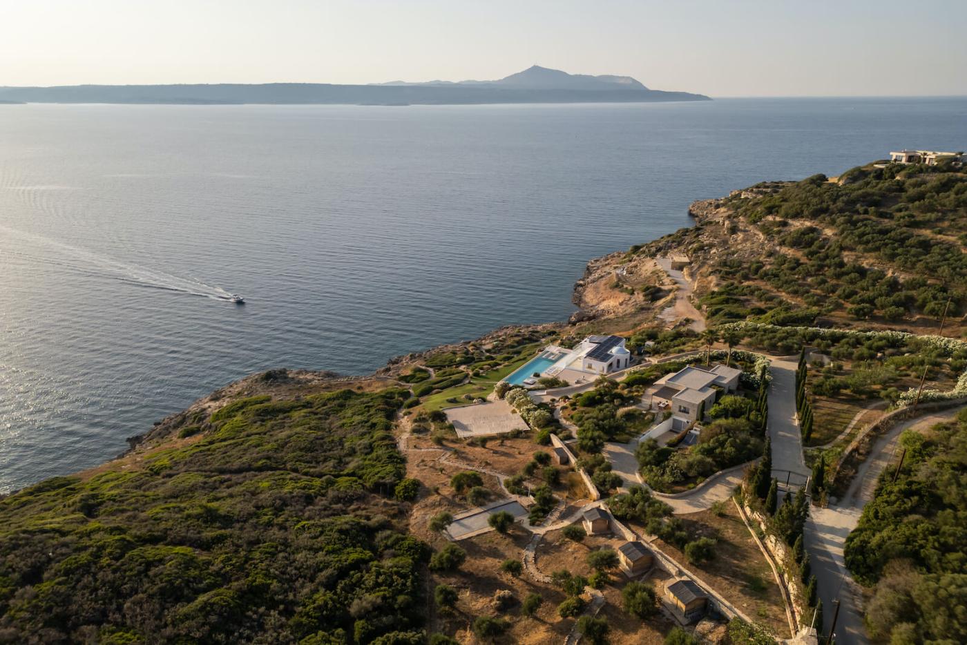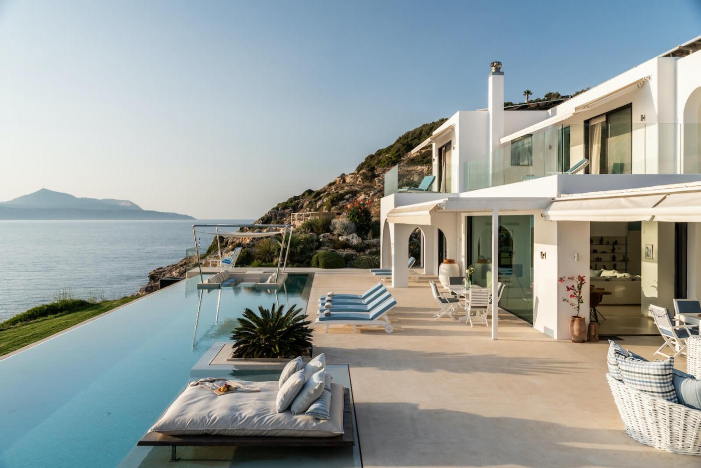 Villa Blue Paradise is a private retreat with a contemporary, three-bedroom main villa and a separate stone guesthouse, with an additional two bedrooms providing some extra privacy.