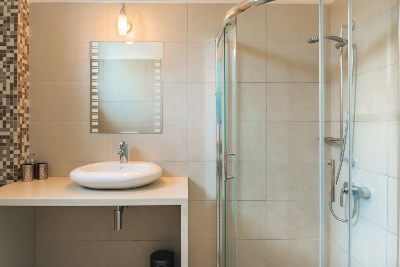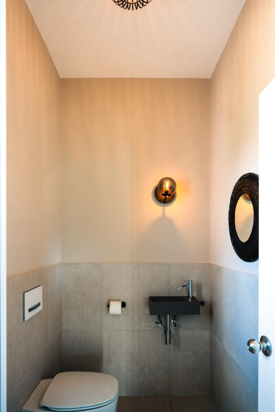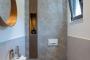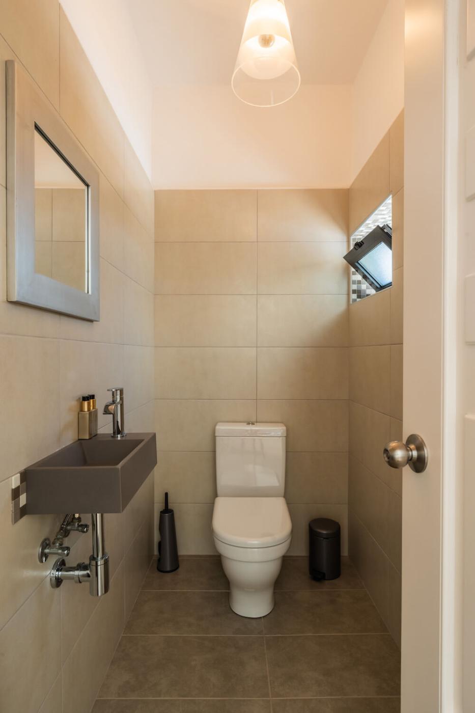 The villa is thoughtfully designed across three levels. The master bedroom is located on the first floor, providing complete privacy and a peaceful retreat. On the ground floor, the open-plan living area features a fully equipped kitchen, a spacious living room, and a dining area, complemented by a convenient WC for guests. On the lower floor, two double bedrooms each have en-suite bathrooms, along with the second WC, ensuring comfort and privacy for all.
