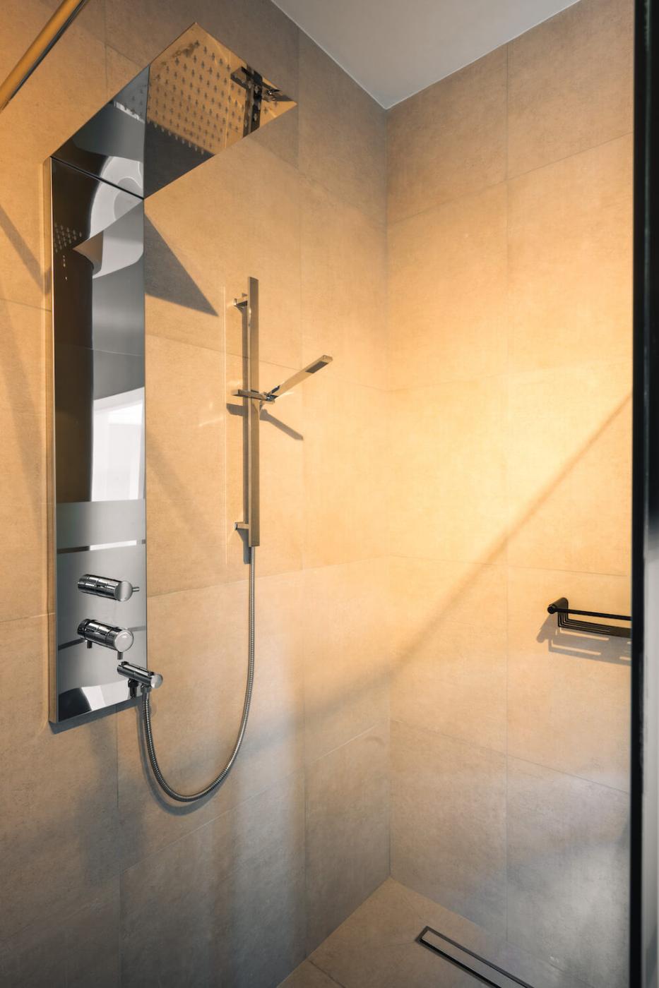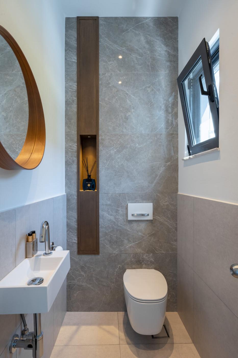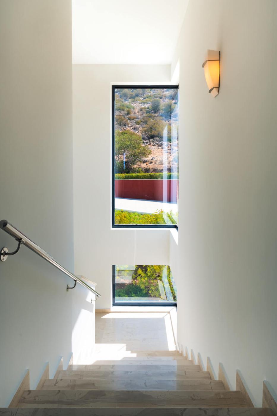 The villa is thoughtfully designed across three levels. The master bedroom is located on the first floor, providing complete privacy and a peaceful retreat. On the ground floor, the open-plan living area features a fully equipped kitchen, a spacious living room, and a dining area, complemented by a convenient WC for guests. On the lower floor, two double bedrooms each have en-suite bathrooms, along with the second WC, ensuring comfort and privacy for all.