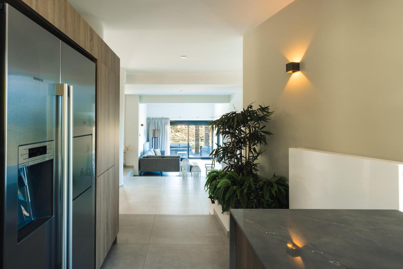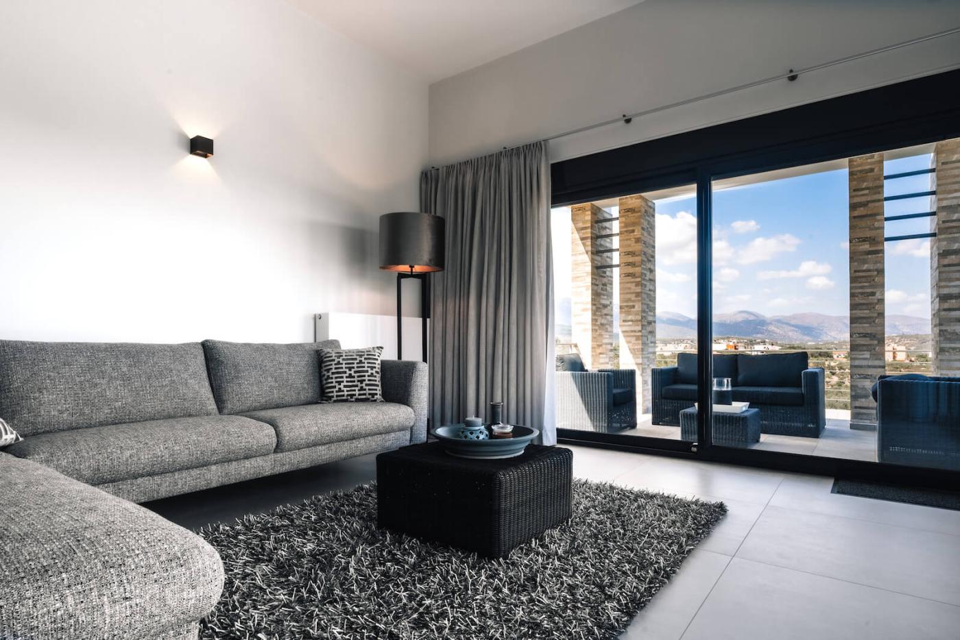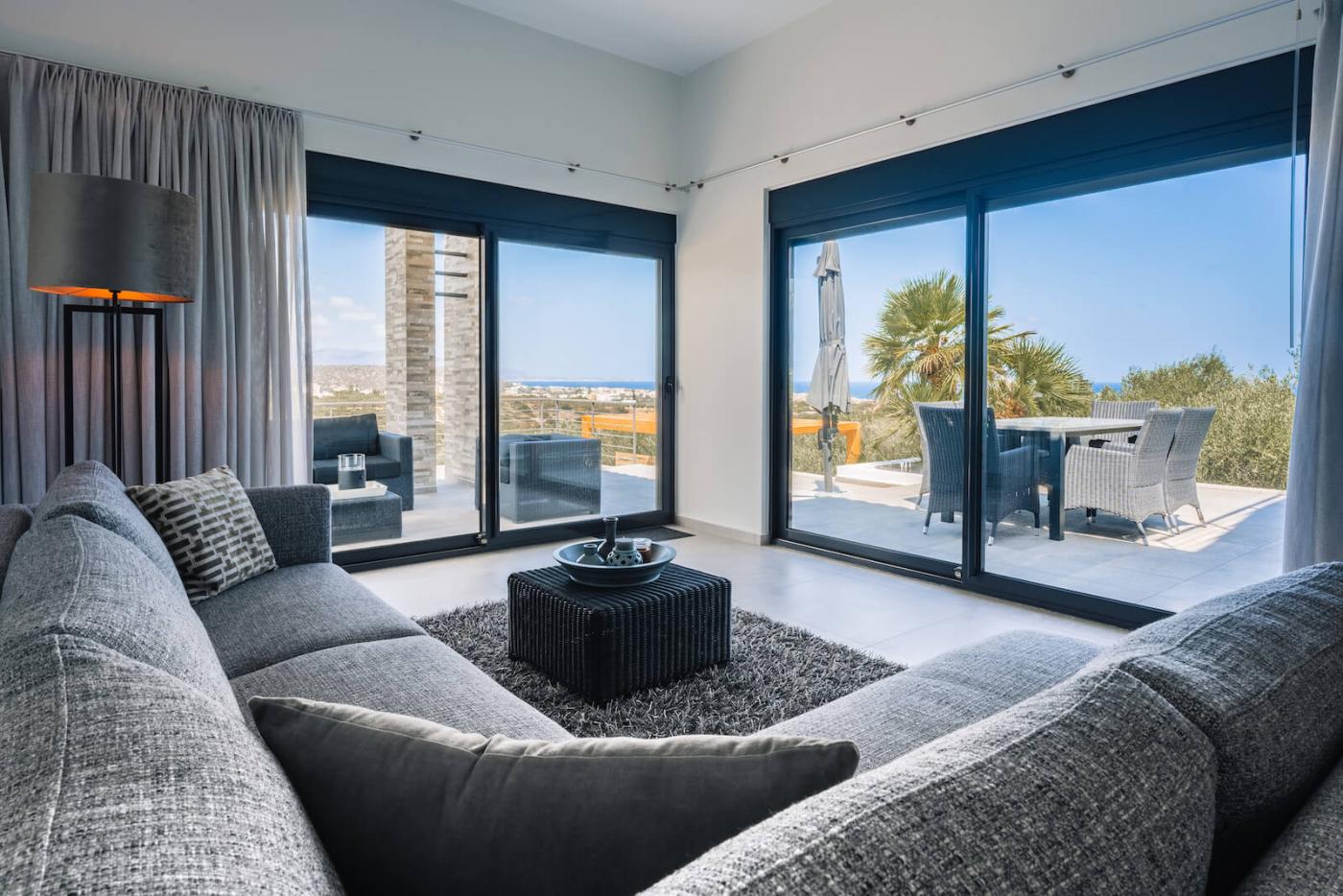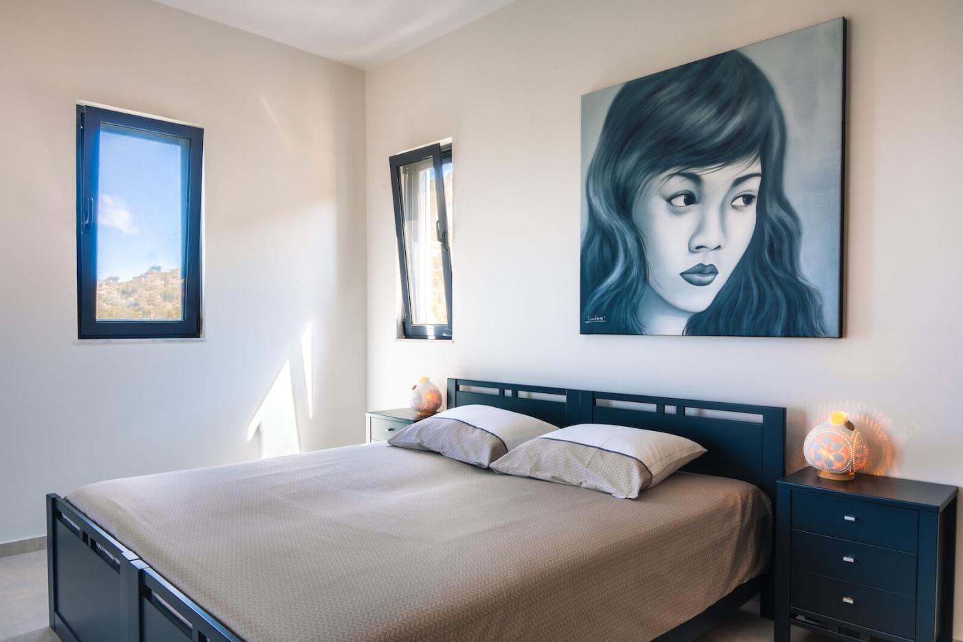 Step outside to enjoy the villa’s private swimming pool, surrounded by sun loungers, and a fully equipped outdoor bar, perfect for enjoying cocktails, casual dining, or entertaining in style. From the terrace, you can take in breathtaking views of the sea, while the landscaped areas provide a peaceful setting to relax and soak up the Cretan sun.