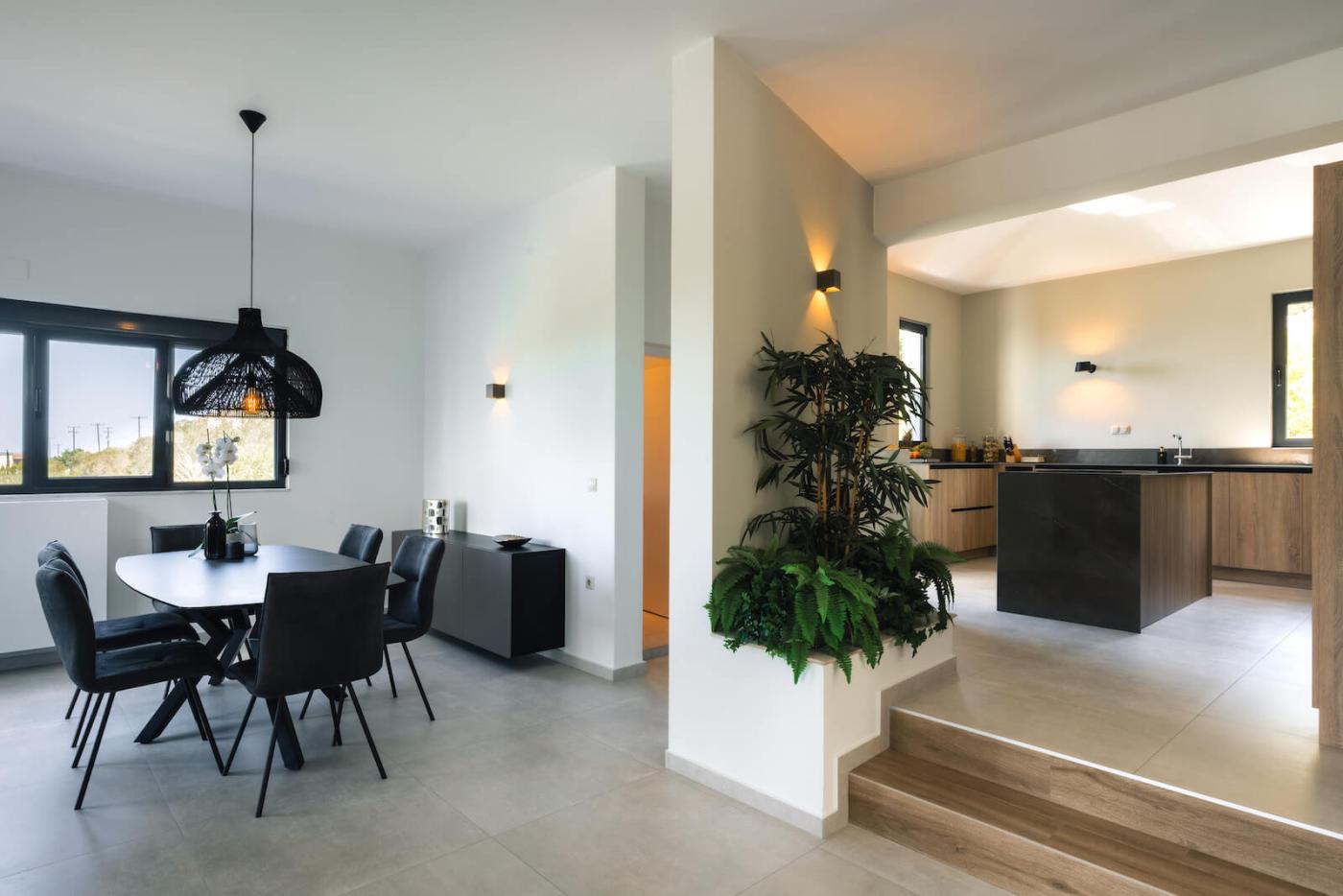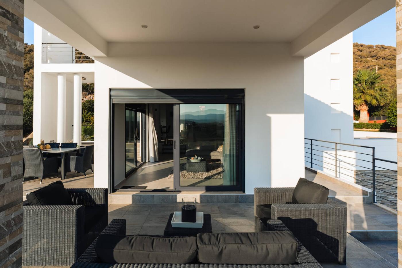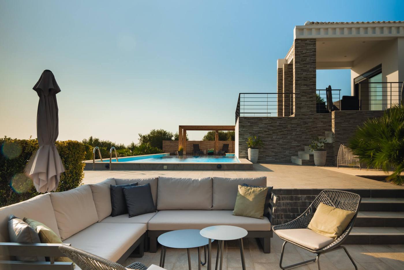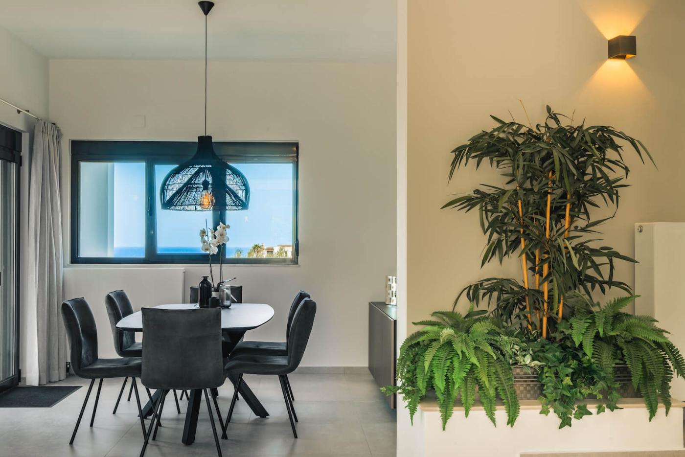 Step outside to enjoy the villa’s private swimming pool, surrounded by sun loungers, and a fully equipped outdoor bar, perfect for enjoying cocktails, casual dining, or entertaining in style. From the terrace, you can take in breathtaking views of the sea, while the landscaped areas provide a peaceful setting to relax and soak up the Cretan sun.