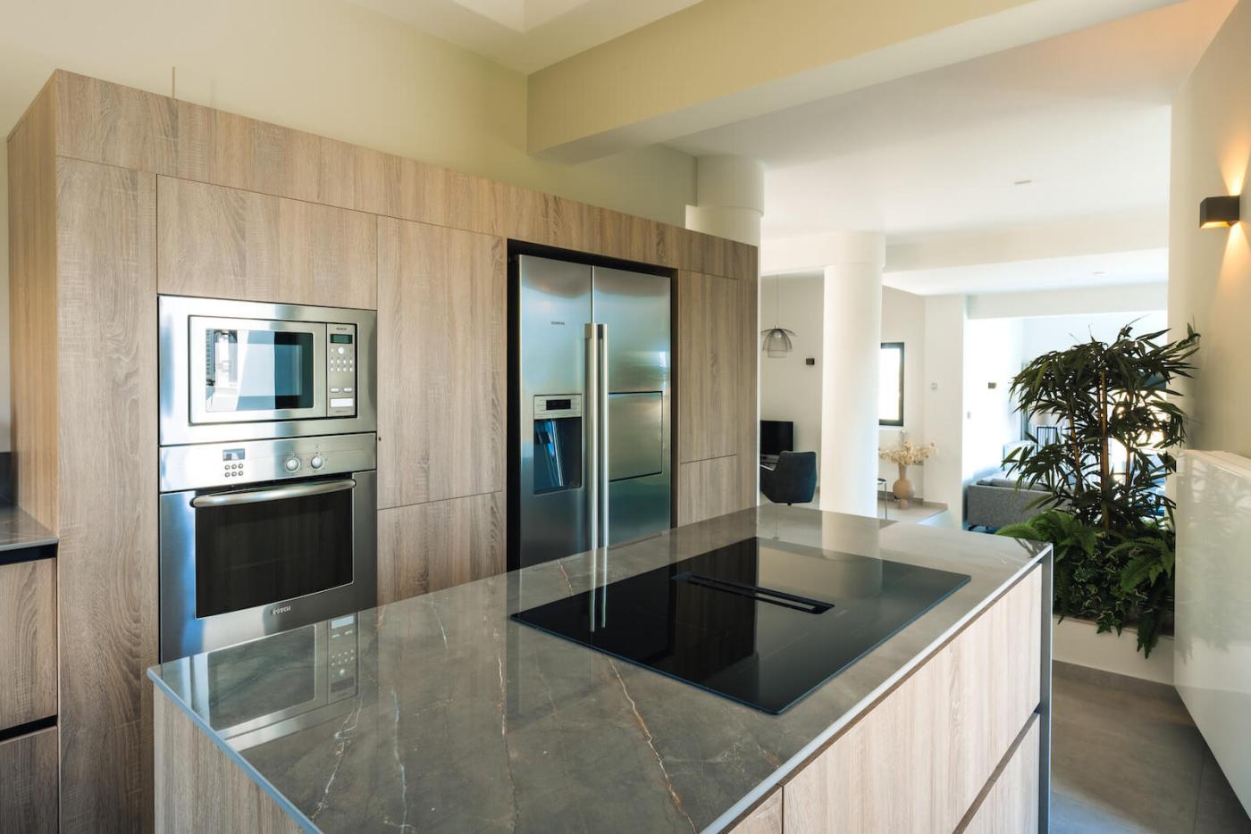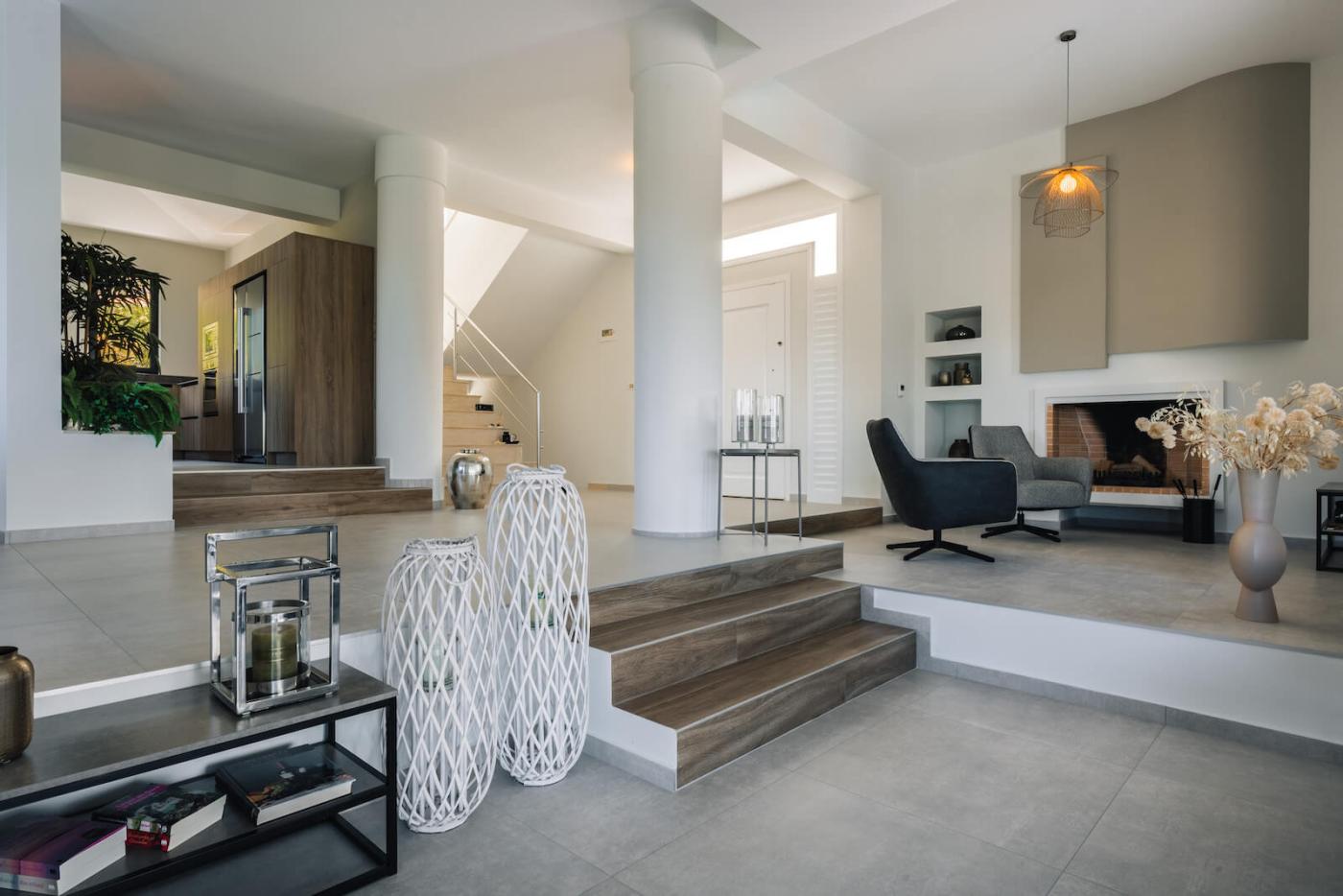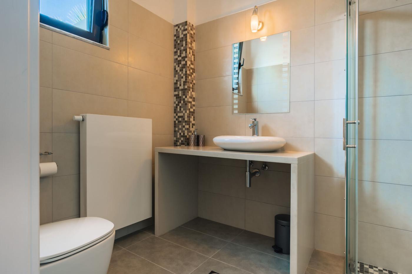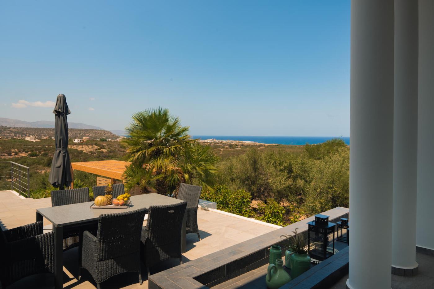 Step outside to enjoy the villa’s private swimming pool, surrounded by sun loungers, and a fully equipped outdoor bar, perfect for enjoying cocktails, casual dining, or entertaining in style. From the terrace, you can take in breathtaking views of the sea, while the landscaped areas provide a peaceful setting to relax and soak up the Cretan sun.