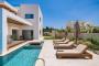 In the outdoor areas on the ground floor, you can enjoy cool moments in the private pool, seek shade under the sunbeds or relax on the water bed under the Mediterranean sun. The BBQ area with the wood oven is suitable for culinary creations prepared by yourself or the villa’s chef, which you can enjoy in the covered outdoor dining area. In the garden, there is also a playground for endless hours of play and entertainment.