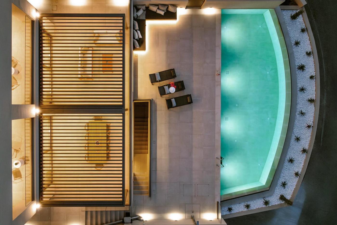 Perched above the coast of Agia Pelagia, Kyma Villa allows you to immerse yourself in the infinite beauty of the Cretan Sea from every angle. The centerpiece is a heated infinity pool (14m x 4.5m x 1.80m), where water meets the horizon, ideal for sunrise swims or sunset cocktails. Heated pool option is available upon request. Multiple outdoor lounge areas, LED-lit pergolas, lush gardens, and a panoramic dining terrace provide the perfect setting for alfresco dining or quiet relaxation.