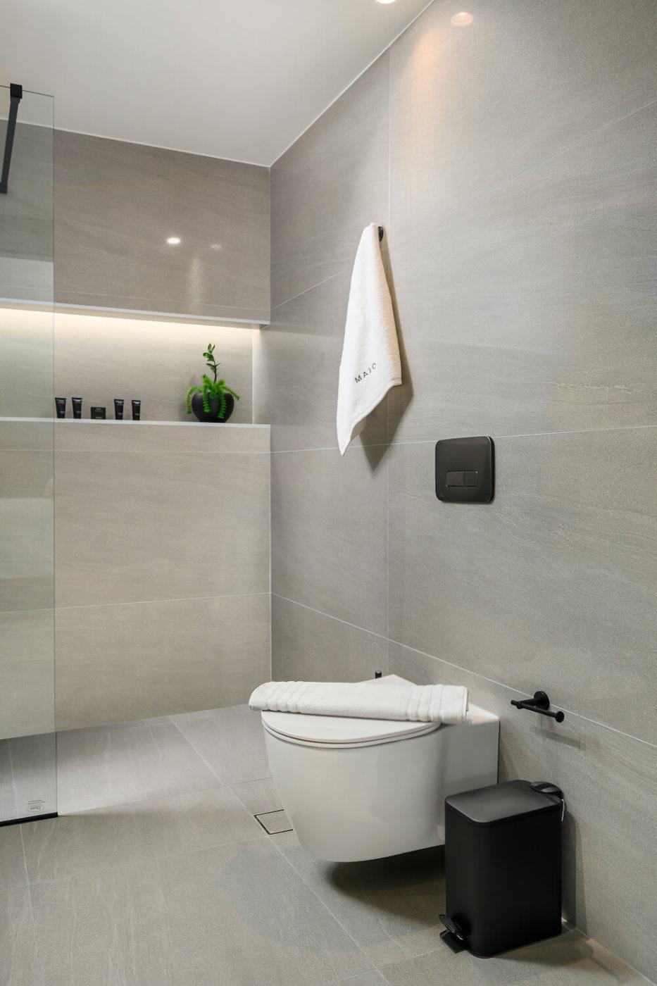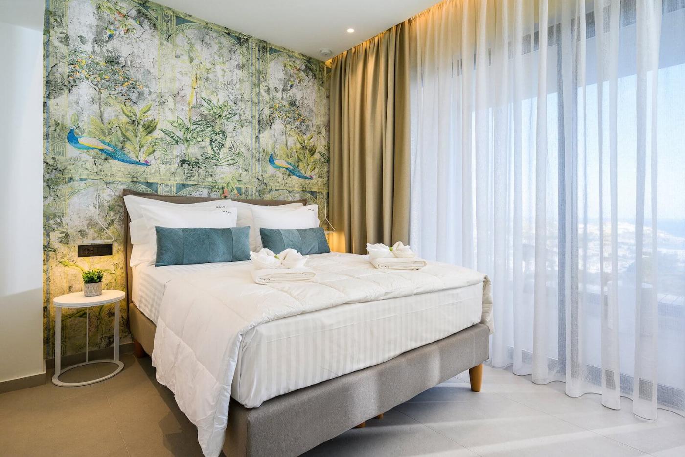 With six luxurious bedrooms accommodating up to 12 guests, Kyma ensures privacy and comfort for all: five bedrooms are located in the main building, and one independent guest suite includes its own kitchen and bathroom. All rooms offer ensuite bathrooms, smart TVs, air conditioning, Wi-Fi, and plush bedding. An elevator and stair lift provide full accessibility for guests with special needs.