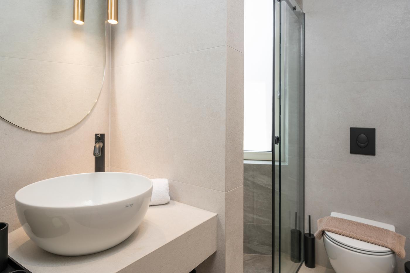Each of the five bedrooms features a large opening with an excellent view and a private bathroom for ultimate comfort and privacy. In two of the bedrooms, there is the possibility of adjusting two single beds, making it ideal for families with children.