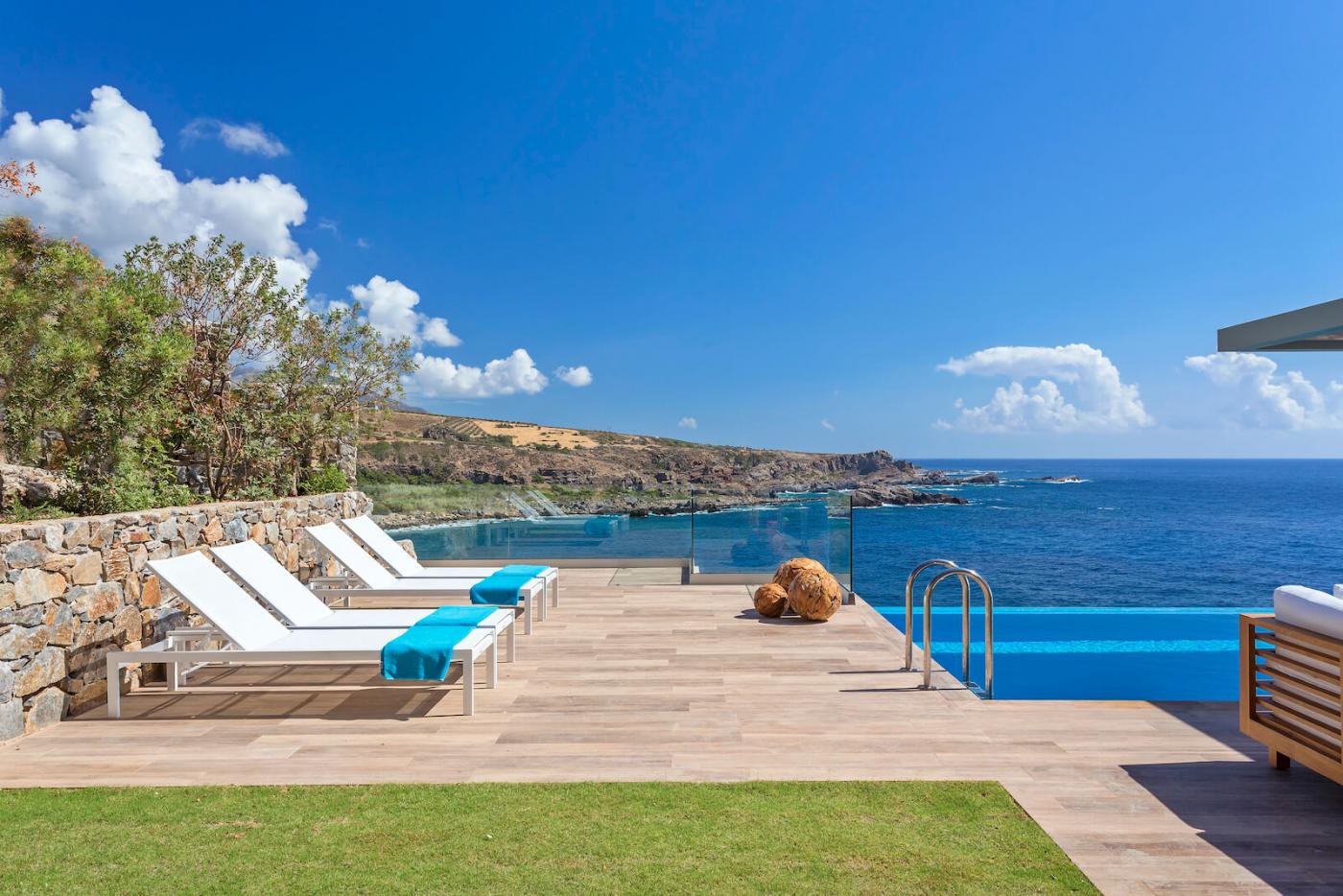 Layering itself down the side of a rocky cliff, the villa is cut into the landscape effortlessly embracing the elements of nature. Details, such as the big rock which has been turned into an element of the structure, or the small waterfall linking the property’s main pool with a plunge pool a level below, create a restful sanctuary of peace and serenity just a stone's throw from the beach. Meanwhile, the pool’s glass edge makes you feel as though the water flows right into the sea! Throughout the villa guests are encouraged to indulge in a joyful sense of harmony, which appeals to devotees of the Cretan spirit.