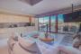 Guests enjoy high-quality amenities, including Coco-Mat beds crafted from natural materials, ensuring a truly exceptional sleeping experience. Expansive glass openings provide unobstructed views of the surrounding landscape, while terraces on two levels allow relaxation amidst breathtaking scenery. The private infinity pool (50 m²) with hydro-massage and waterfall jets offers the perfect spot to unwind and take in the tranquil surroundings.